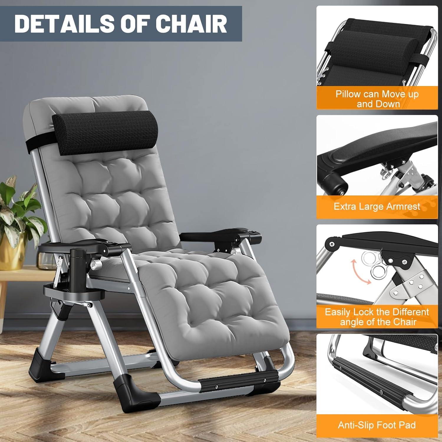 - Adjustable Reclining Position: Chairs are designed with a lockable reclining system. It can be adjusted to any position to your preferences
