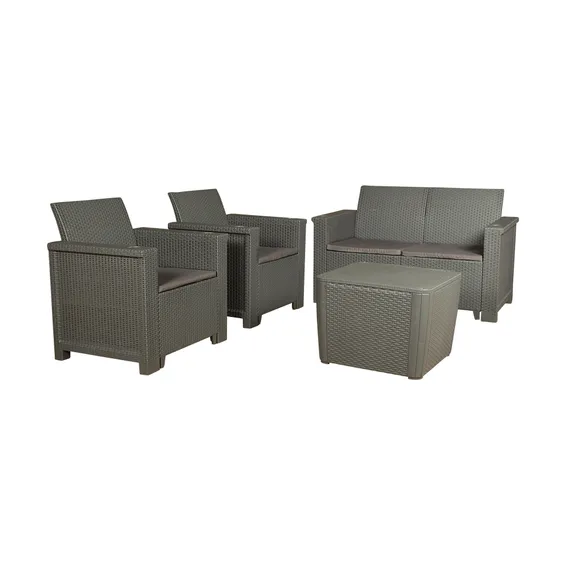 • Includes 2 armchairs, 1 seater sofa, and a coffee table/storage chest