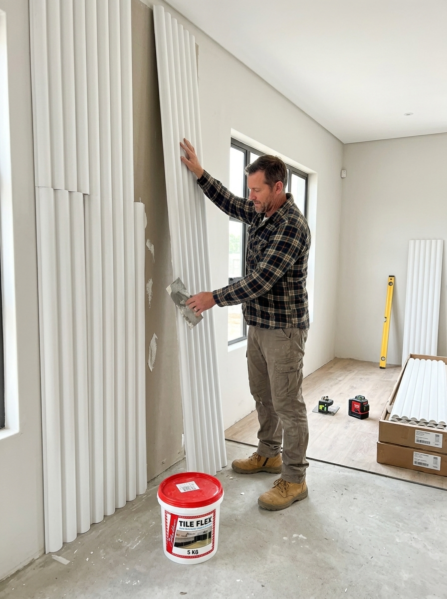This combo includes 20 premium Round PVC Wall Panels across 2 full boxes, paired with 1 x 5kg Tile Fix adhesive, giving you everything needed for a flawless, professional installation.