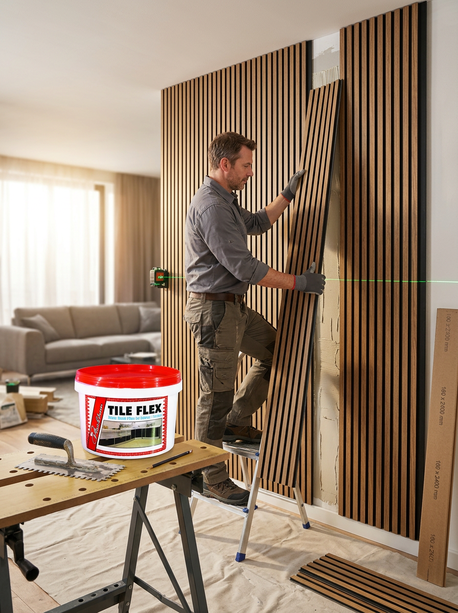 10 premium PVC Wall Panels ( 1 BOX ) - paired with 1 x 2kg Tile Flex adhesive, giving you everything you need for a seamless, professional finish right out of the box.